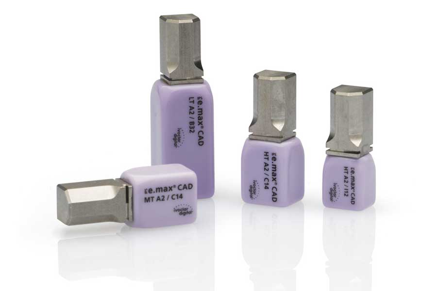 Wir verarbeiten E-Max mithilfe der modernen CAD/CAM-Fräs-Technologie. Der entscheidende Vorteil liegt in der Reinheit und Homogenität des gefrästen Materials gegenüber der gepressten Variante. Die innovative Lithium-Disilikat(LS2)-Glaskeramik IPS e.max CAD bietet eine 2,5- bis 3-mal höhere Festigkeit (360 MPa) als andere Glaskeramiken.