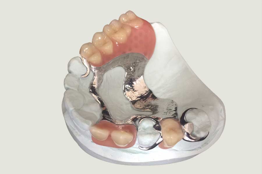 Der abnehmbare Anteil ist bei Laien als „Prothese“ bekannt. Er besteht aus einem tragenden Element aus hochwertigem Dentalstahl, den Prothesensätteln aus Kunststoff, den künstlichen Zähnen aus Compositekunststoff und schließlich den feinmechanischen Verbindungselementen, welche die Prothese unsichtbar und sicher an den Ankerzähnen in Position halten. Die Haltekraft der feinmechanischen Elemente ist so eingestellt, dass die Patienten, zum Zwecke einer komfortablen Reinigung, diese selbstständig aus dem Mund entfernen und wieder eingliedern können.