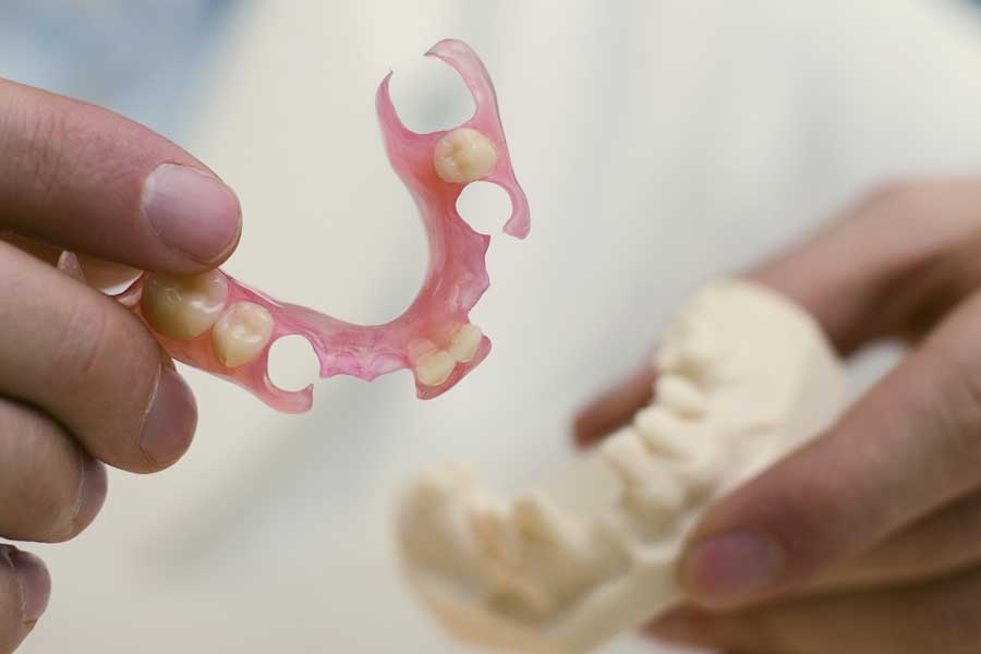 Teilprothesen beschreiben einen Zahnersatz, der für ein Gebiss mit verloren gegangenen Zähnen und bestehender Restbezahnung angefertigt wird. Eine Teilprothese (partielle Prothese, von lateinisch pars für Teil) kann in unterschiedlichen Ausführungen hergestellt werden. Die günstigste Ausführung, die für dauerhaften Einsatz gefertigt wird, heißt Klammerprothese. Sie besteht aus einer metallischen Basis, metallischen Halteelementen (Zahnklammern), Composite-Kunststoffzähnen und dem Prothesensattel. Der Nachteil dieser einfachen Versorgung ist die Sichtbarkeit der Zahnklammern sowie deren Auswirkungen auf die Haltezähne. Die Klammern reiben dauerhaft auf der Zahnoberfläche, Speisereste können haften bleiben und die Karies fördern.